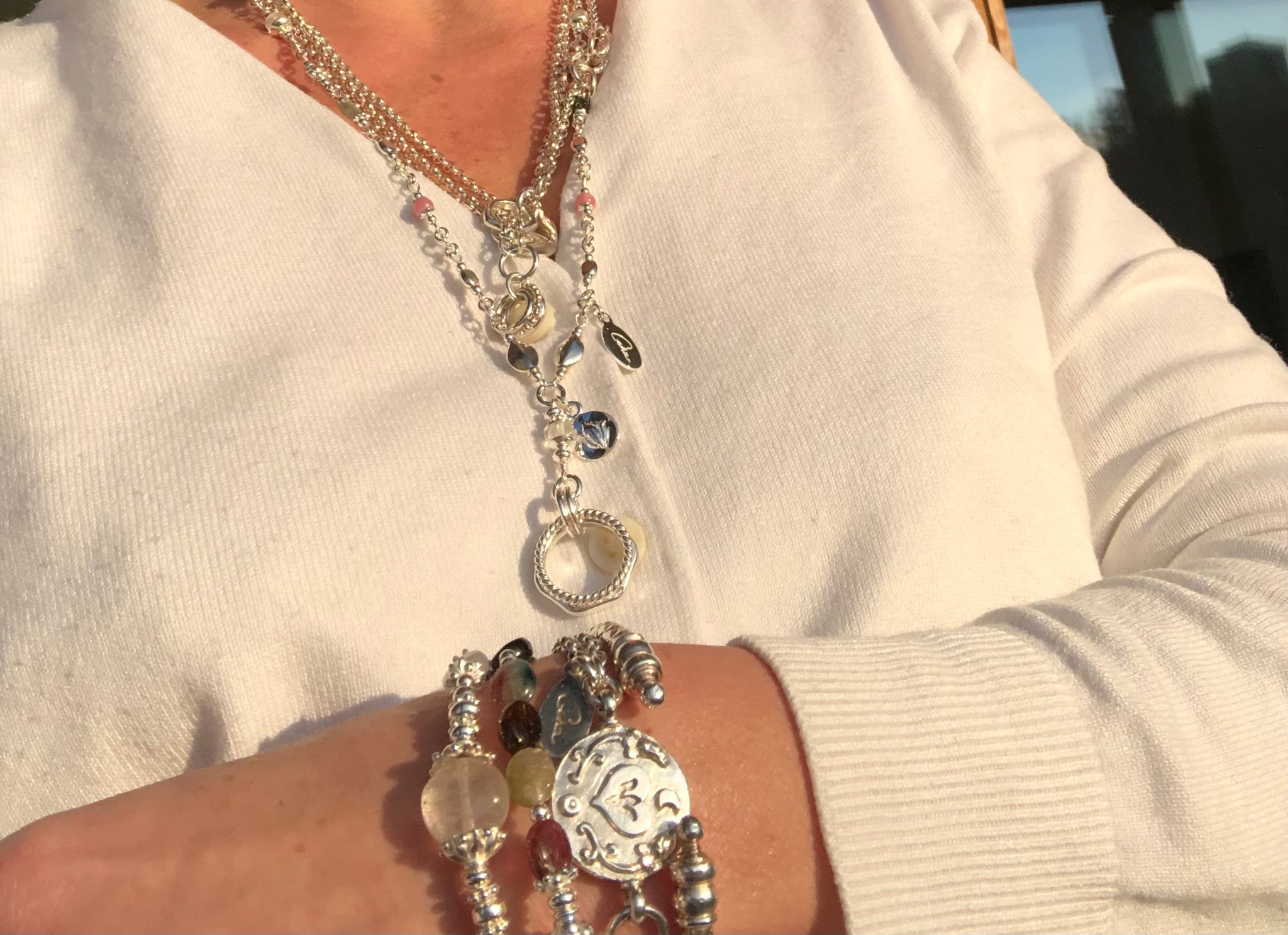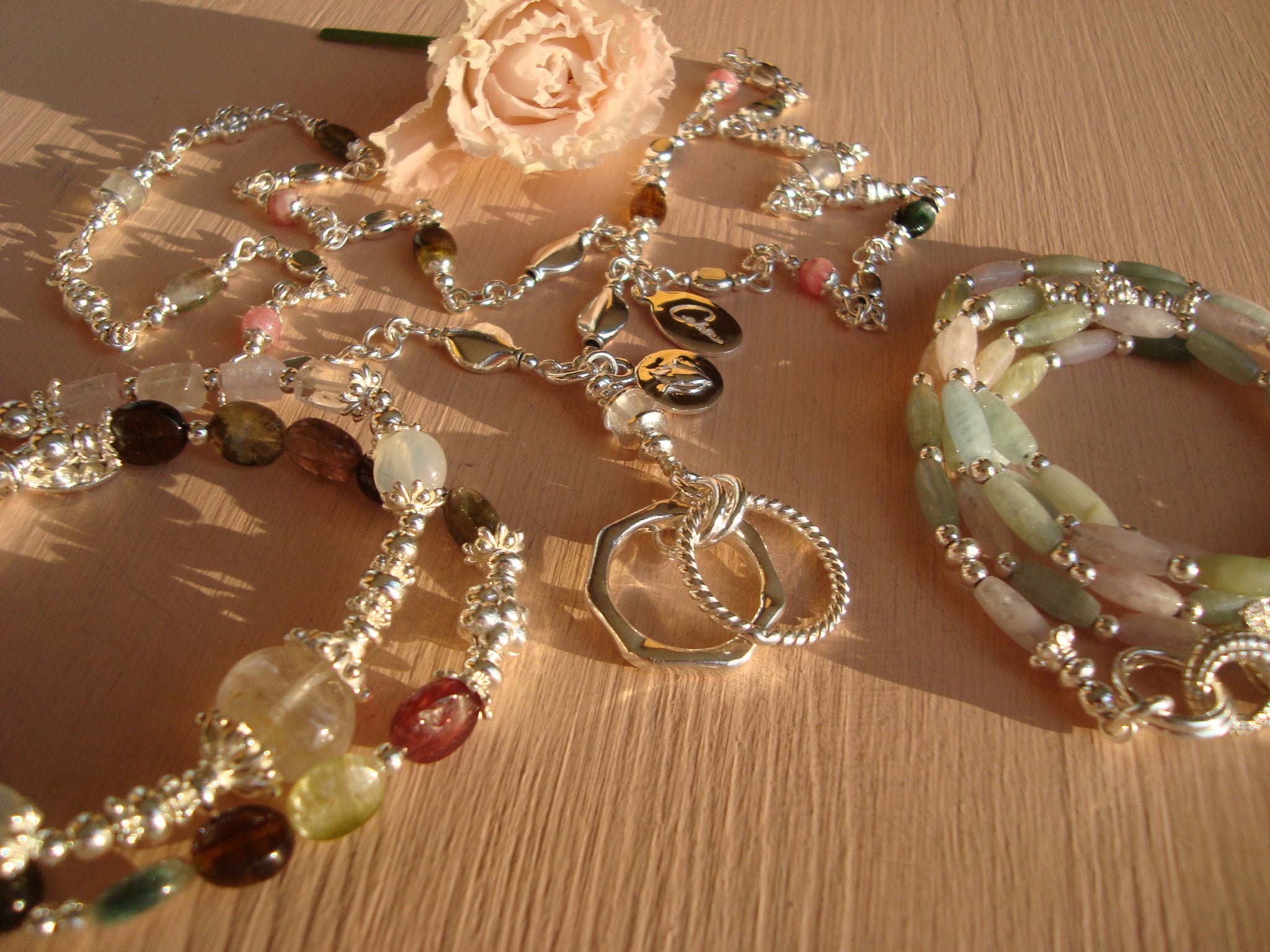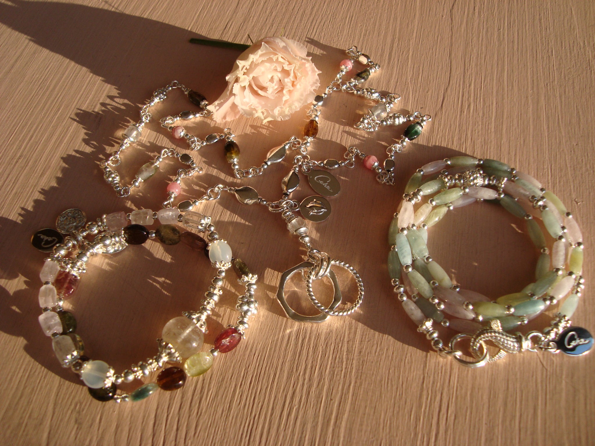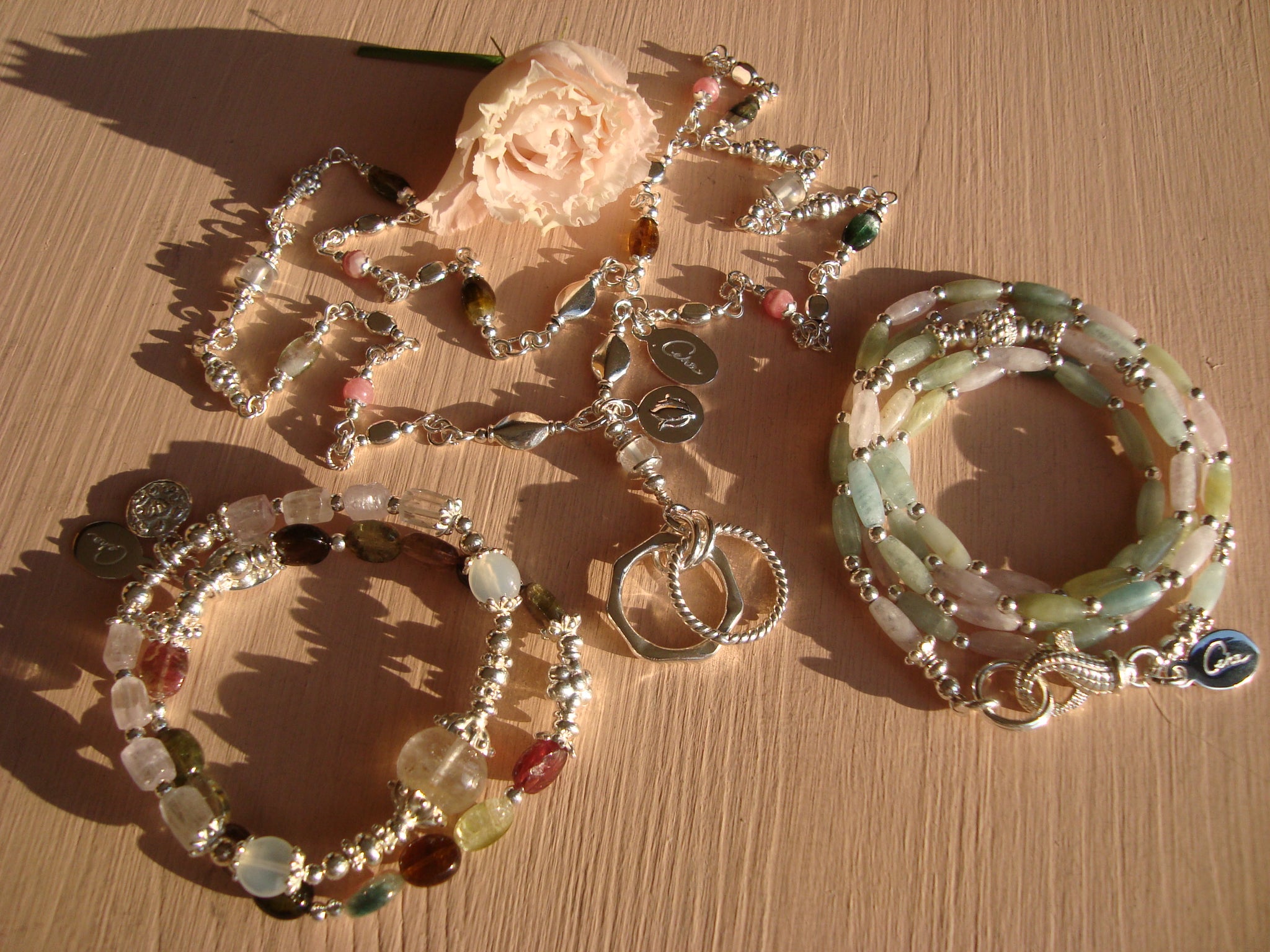 Alle Kreationen aus der Ceha Ceha-Kollektion bestehen aus echten Materialien: Silber, (Halb)-Edelsteine, Süsswasserperlen, Holzperlen und Leder.