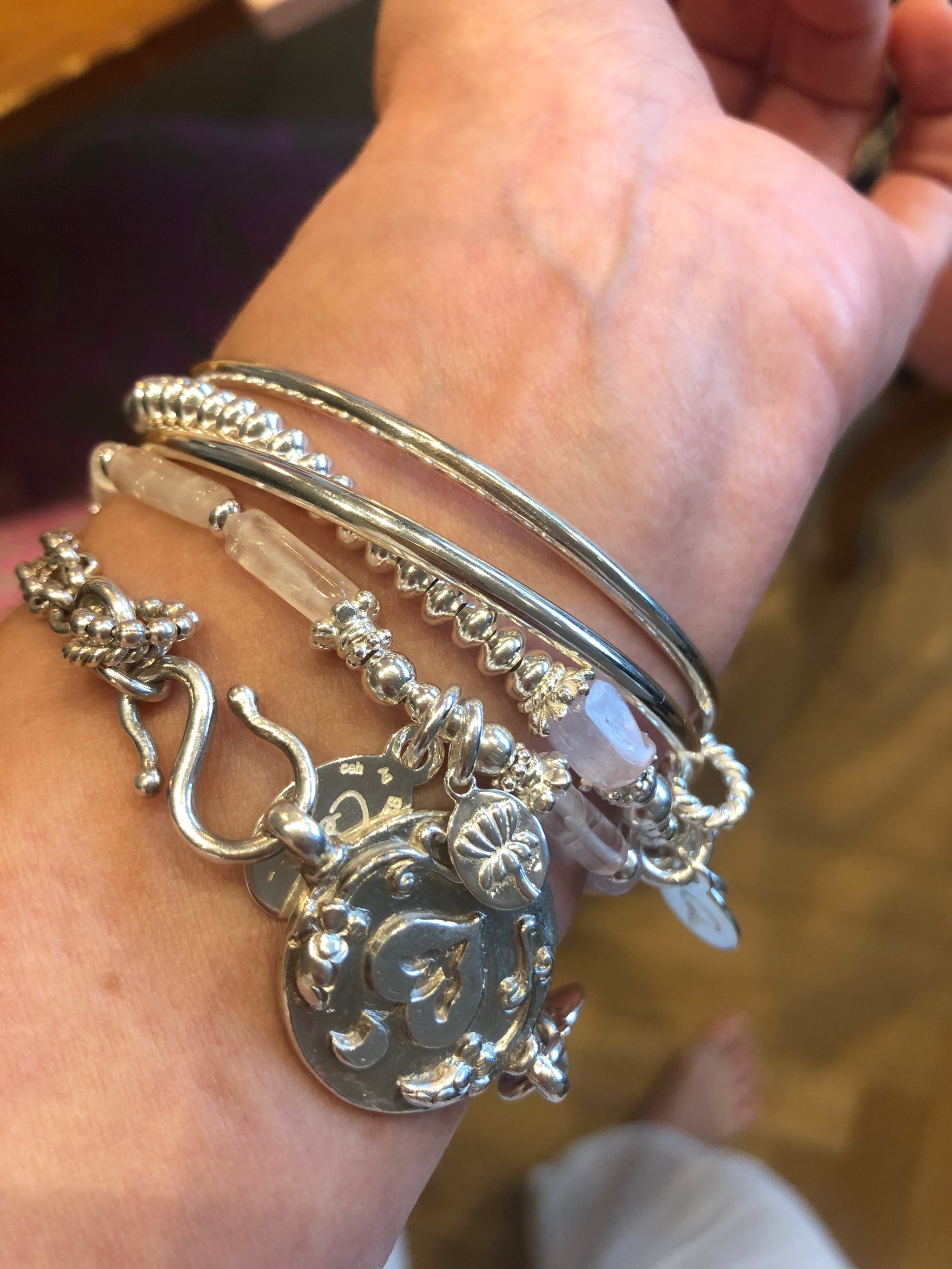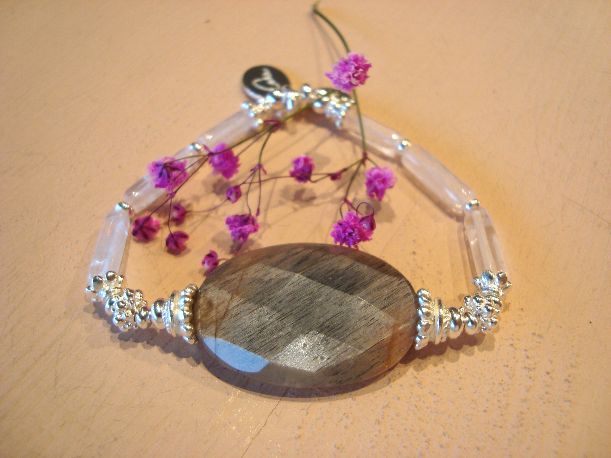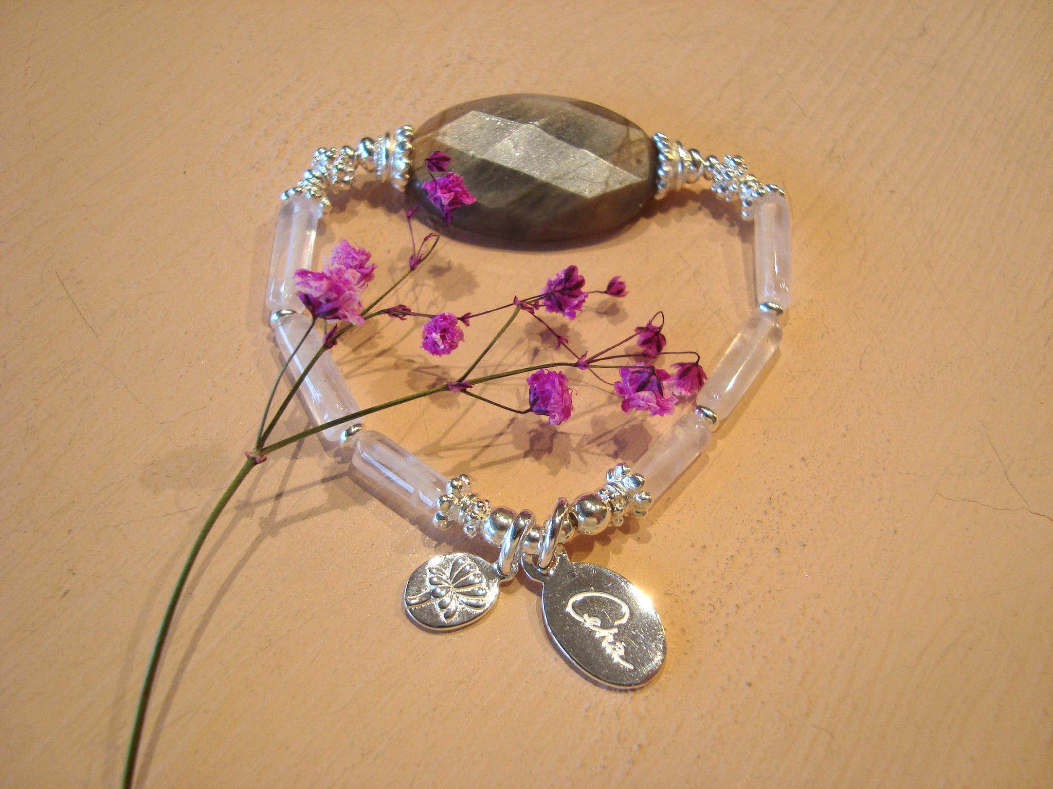 Mondstein steht für alle weiblichen Themen und der Rosenquarz ist DER Herzstein schlechthin - also schlicht eine wundervolle Mischung, schön eingefasst von viel verspielten Silberteilen und einem süssen kleinen Lotusblüten-Amulettli. Es ist einfach wohltuend, sie bei sich zu haben und auf der Haut zu haben.