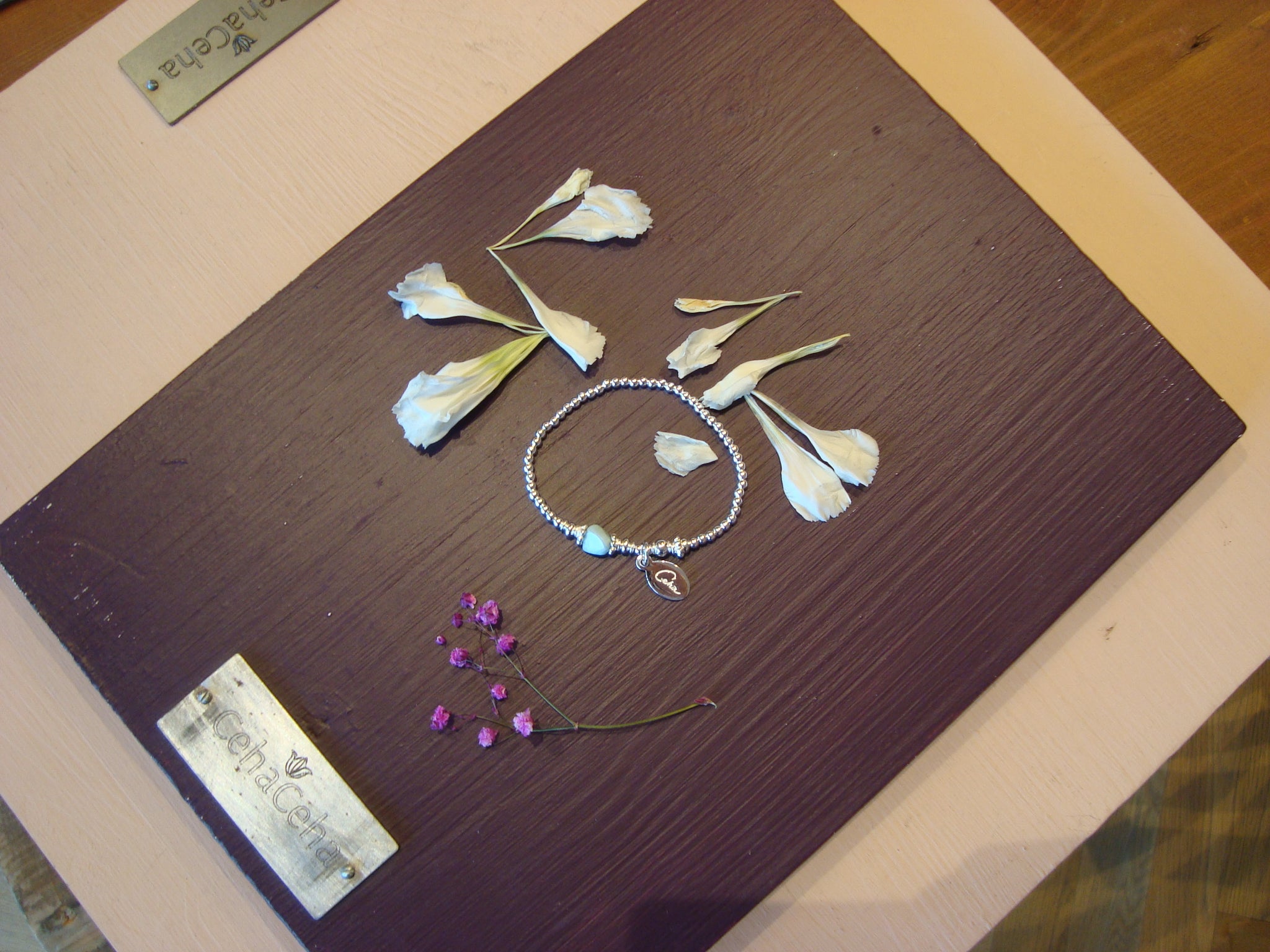 Alle Kreationen aus der Ceha Ceha-Kollektion bestehen aus echten Materialien: Silber, (Halb)-Edelsteine, Süsswasserperlen, Holzperlen und Leder.